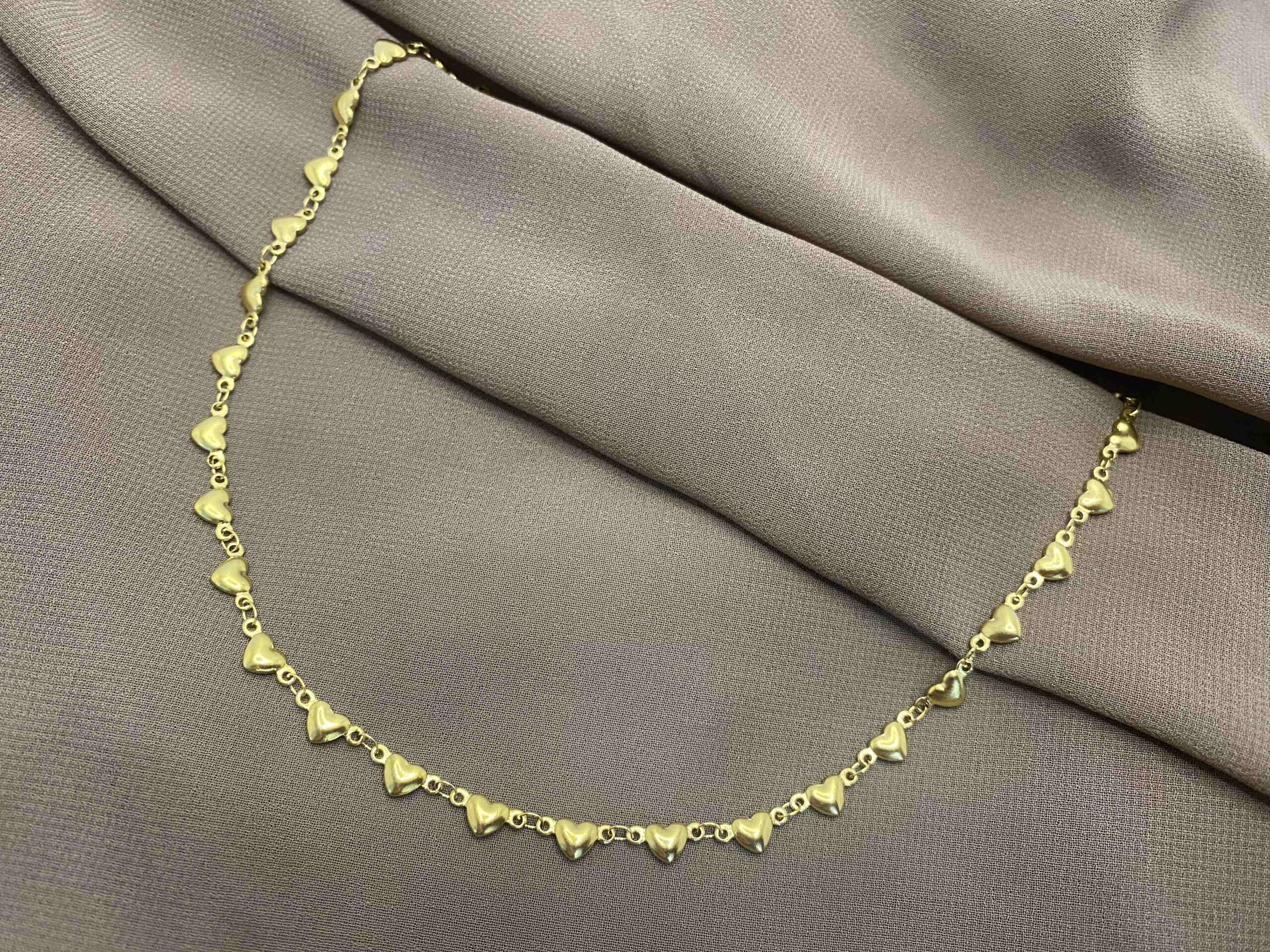 Make every outfit a little more romantic with this dainty golden necklace featuring a series of adorable mini heart charms. The minimalist yet charming design adds a touch of sweetness to your everyday or festive look. Lightweight and elegant, it’s perfect for layering or wearing solo.